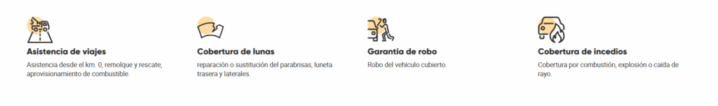 - Garantía de robo: garantiza el pago de los gastos de la reparación o reposición de los daños materiales, parciales o totales, causados al vehículo asegurado o la pérdida del mismo debido a la sustracción ilegítima o su tentativa, siempre que el propietario efectúe la denuncia correspondiente a las autoridades competentes.
