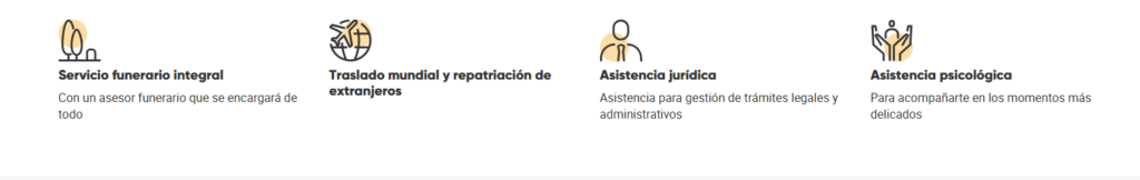 - Asistencia psicológica para acompañar a los asegurados de la póliza y familiares del fallecido en los momentos más delicados.
