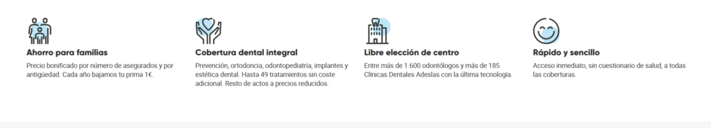 Atención personalizada con numerosas ventajas que crecen año tras año. Las franquicias se renuevan cada año, incluyendo nuevos servicios sin coste adicional en Clínicas Dentales Adeslas, hasta 49 servicios sin coste adicional: