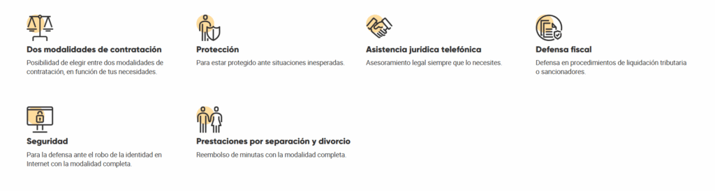 - Asistencia jurídica telefónica: asesoramiento legal.